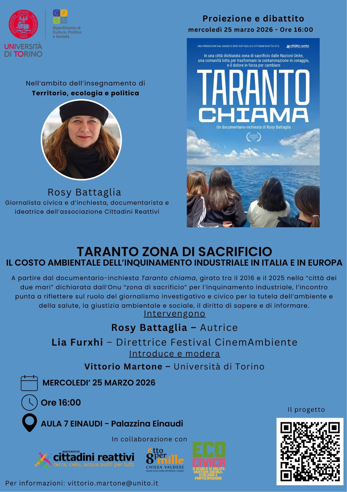Taranto Chiama all’Università di Torino: proiezione e dibattito su ambiente, salute e giustizia ambientale
